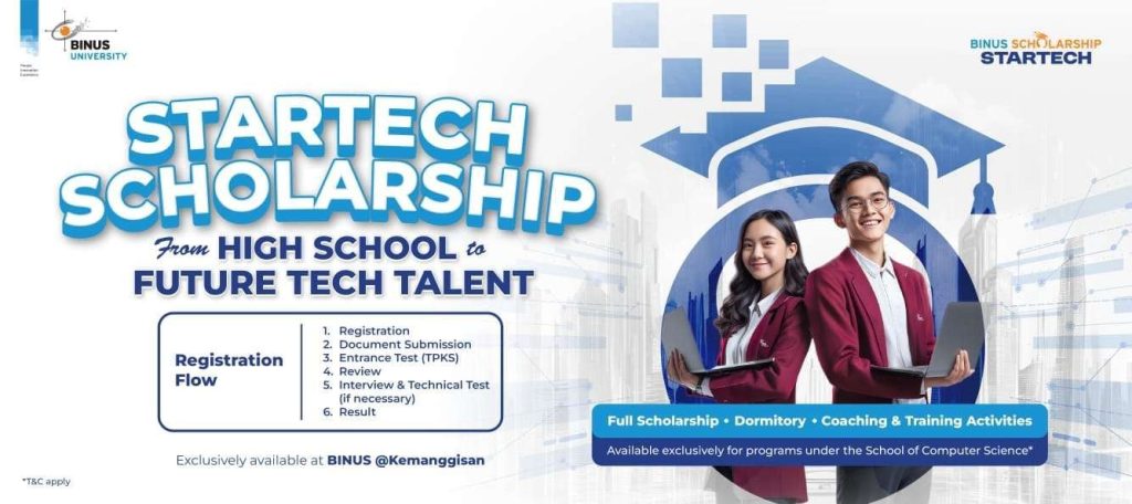 BINUS University kembali memperkuat ekosistem talenta teknologi Indonesia. Program StarTech Scholarship hadir dengan beasiswa penuh dan pembinaan intensif.