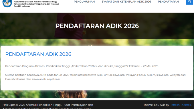 Demikian kami sampaikan informasi Beasiswa ADik 2026 Jadi Peluang Emas, Kemdiktisaintek Imbau Segera Daftar semoga bermanfaat.