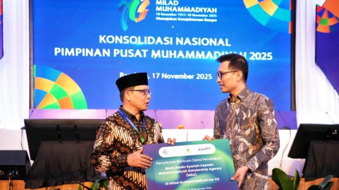 Secara simbolis, dukungan beasiswa itu telah diserahkan oleh Direktur Aladin Syariah, Arief Satrio Putra kepada Sekretaris PP Muhammdiyah, Muhammad Sayuti di Universitas Muhammadiyah Bandung, 17 November 2025 kemarin.