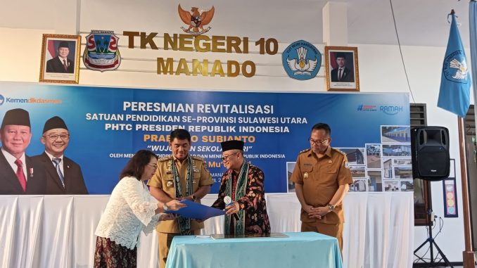 Kedatangan Mendikdasmen untuk meresmikan secara simbolik banguna sekolah-sekolah penerima program revitalisasi tahun 2025 di Sulut.