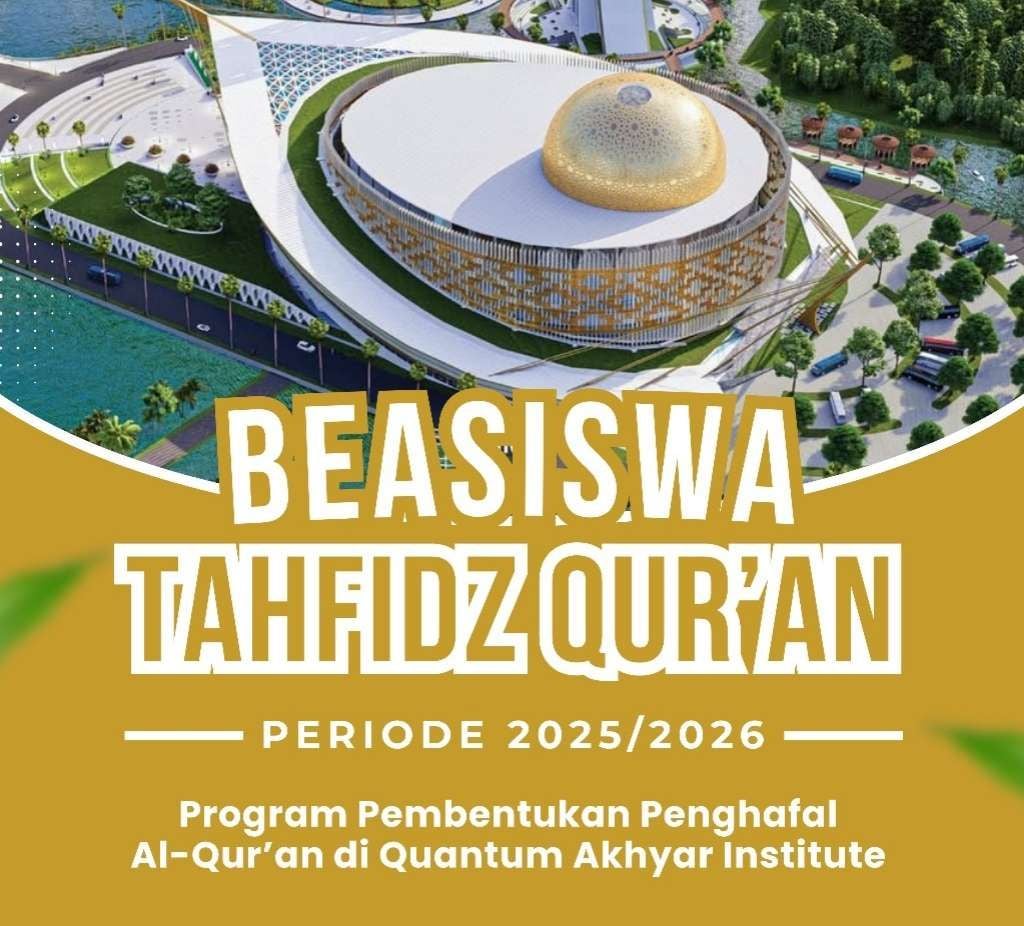 AAS Foundation bekerja sama dengan Quantum Akhyar Institute kembali membuka Program Beasiswa Tahfidz Qur’an Periode 2025/2026. Program ini bertujuan mencetak generasi muda penghafal Al-Qur’an yang berkarakter Qur’ani dan berakhlak mulia.